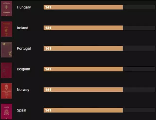 并列第六名:匈牙利、冰岛、葡萄牙、比利时、挪威、西班牙