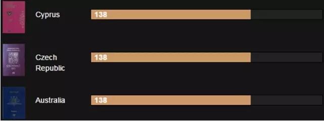 并列第九名:塞浦路斯、捷克、澳大利亚