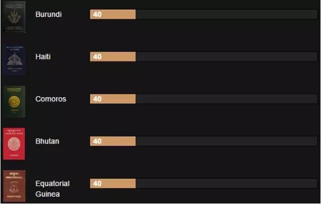 倒数并列第四:布隆迪、海地、科摩罗、不丹、赤道几内亚